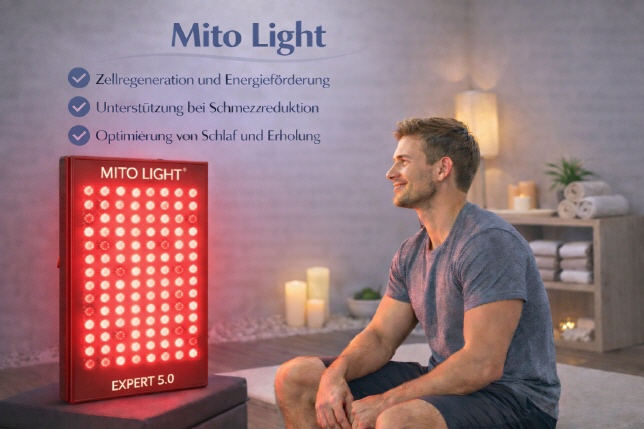 In unserer Praxis setzen wir zur Unterstützung regulativer Prozesse die MitoLight-Lichttherapie mit dem Expert 5.0-Panel ein – ein hochwertiges System für die Anwendung von rotem und nahinfrarotem Licht. Das MitoLight Expert 5.0 arbeitet mit spezifischen Lichtwellenlängen im roten und nahinfraroten Spektrum, die über ein großflächiges LED-Panel abgegeben werden. Die Wellenlängen können individuell eingestellt werden, um die Bestrahlung an unterschiedliche Einsatzbereiche anzupassen. Die Anwendung erfolgt in der Praxis durch eine geführte Lichtbestrahlung über einen definierten Zeitraum, meist über mehrere Minuten pro Sitzung. Die Technik nutzt moderne Multi-Wellenlängen-Dual-Chip-LEDs und erlaubt eine präzise Steuerung der einzelnen Lichtbestandteile über Bedienfeld oder App. Unser Ansatz ist es, diese innovative Lichttechnik als ergänzenden Baustein in individuelle Gesundheits- und Regenerationskonzepte zu integrieren. Wir erläutern Ihnen im persönlichen Gespräch, wie die Anwendung abläuft, was Sie beachten können und wie sie sinnvoll in Ihren Alltag eingebettet werden kann. Dabei informieren wir transparent über Möglichkeiten, Einsatzbereiche und Grenzen dieser Anwendung. Weitere Erklärungen [6 KB]