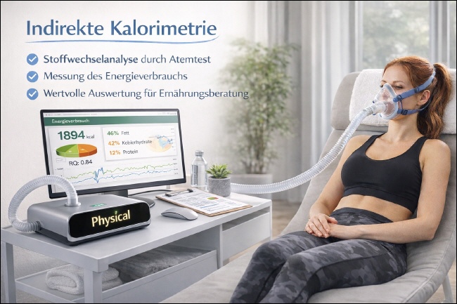 Die indirekte Kalorimetrie ist ein etabliertes Verfahren zur Analyse des Energiestoffwechsels im Ruhezustand. Innerhalb weniger Minuten kann auf Basis der Atemgasanalyse ein individuelles Stoffwechselprofil erstellt werden. Dabei wird gemessen, wie viel Sauerstoff aufgenommen und wie viel Kohlendioxid abgegeben wird. Diese Werte ermöglichen Rückschlüsse auf den aktuellen Energieumsatz sowie auf das Verhältnis der genutzten Energieträger, wie Kohlenhydrat- und Fettstoffwechsel (Brennstoffprofil). Ein besonderer Fokus liegt auf der Frage, wie effizient der eingeatmete Sauerstoff vom Körper verwertet wird. Die Sauerstoffverbrauchsrate liefert orientierende Hinweise auf die körpereigene Energieproduktion und den energetischen Zustand im Ruhezustand. |