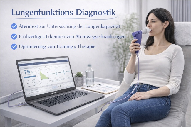 Ergänzend zu den klassischen Untersuchungen biete ich in meiner Praxis nun auch die Spirometrie an – einen modernen, PC-gestützten Lungenfunktionstest. Dieses Verfahren ermöglicht eine detaillierte und objektive Messung Ihrer Lungenfunktion. Die Spirometrie erfasst verschiedene Parameter, die Hinweise auf Atemflussveränderungen oder Lungenvolumina geben. So lassen sich bestimmte Funktionen der Lunge und Atemwege besser einschätzen und Veränderungen frühzeitig erkennen. |