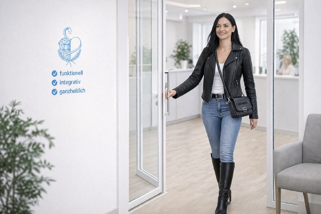 Parken auf eigenem Praxisparkplatz im Hof möglich.